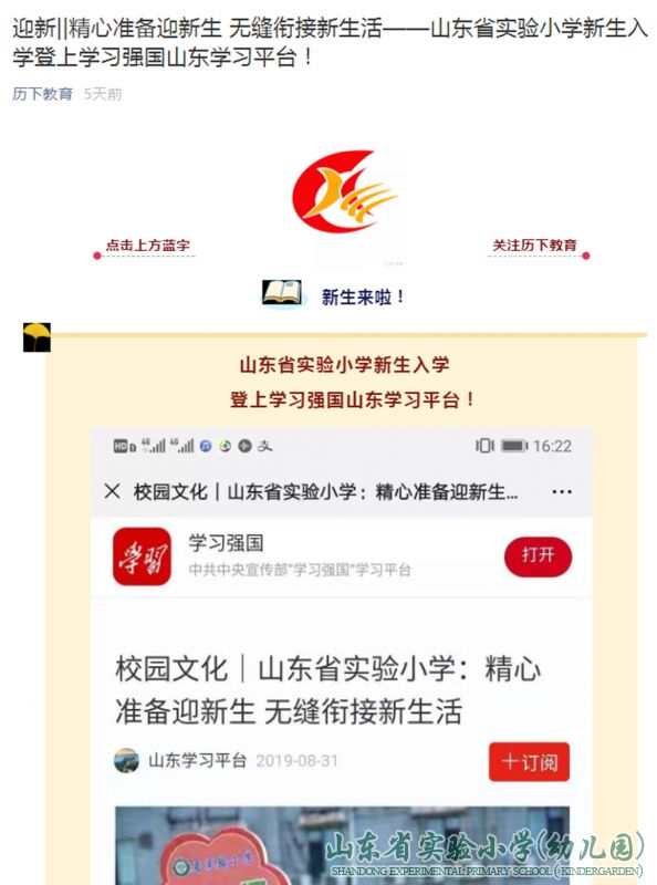 历下教育局:迎新‖精心准备迎新生 无缝衔接新生活—山东省实验小学新生入学登上学习强国山东学习平台!