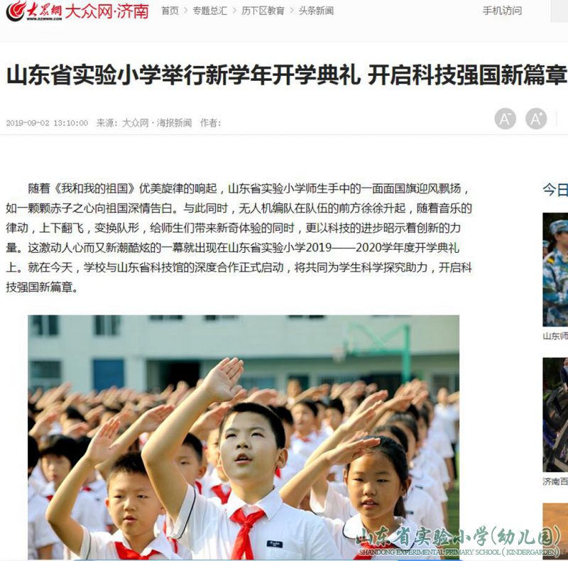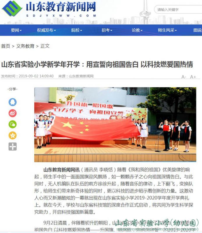 山东教育新闻网:山东省实验小学新学年开学:用宣誓向祖国告白 以科技燃爱国热情