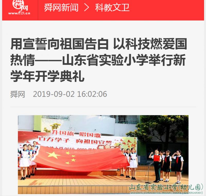 舜网新闻:用宣誓向祖国告白 以科技燃爱国热情—山东省实验小学举行新学年开学典礼