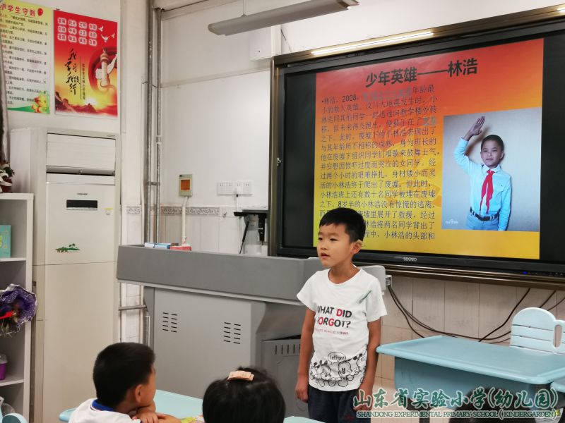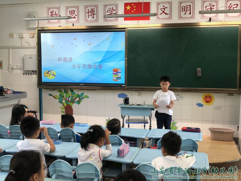 一年级的同学们讲起了少年英雄故事,声音琅琅,心志彰显,稚嫩的声音奏响了秋天英雄主义交响曲。活动中,同学们踊跃走上讲台,把自己喜爱的少年英雄故事讲给大家听,一起分享故事里的感动与励志。他们先是认真的介绍小英雄的故事,然后满怀激情的谈出了自己的收获和体会。台上的同学慷慨激昂的讲着,台下的同学津津有味地听着,教室里弥漫着英雄的凯歌。活动后,同学们纷纷交流感想,余味犹存。活动虽然结束了,但小英雄故事的浩然正气仍激荡在同学们心间,他们争相表示,要做小英雄一样的人,要热爱祖国,勇敢前行。