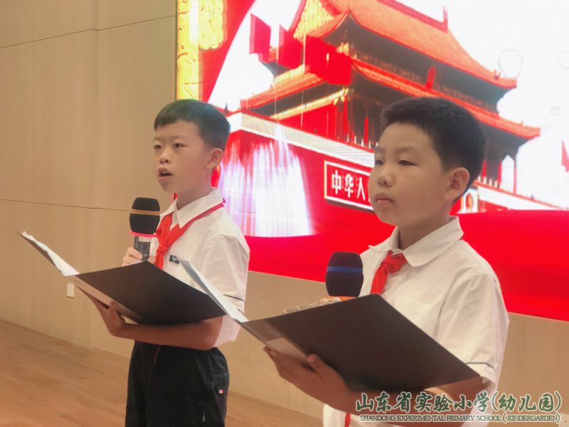 9月16日上午,山东省实验小学结合升旗仪式一并举行第22届推普周活动启动仪式。仪式上,六年级一班班长石雨琪同学代表全班同学向全校师生发出倡议:说好普通话、写好规范汉字,从我们做起。