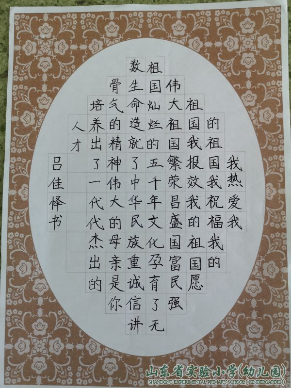 中华民族是一个圆,周长可大可小,圆心无处不在,而半径就是中文汉字,汉字就是中华民族的向心力。二年级开展了“写规范字 书爱国情”的活动。同学们拿起手中的笔,一笔一划,饱含爱国情怀书写爱国诗词。通过此项活动,引导学生感悟中华汉字的魅力,让每一个学生们认识到写规范字是我们每一位中国人的神圣宣言,也是我们责无旁贷的职责。