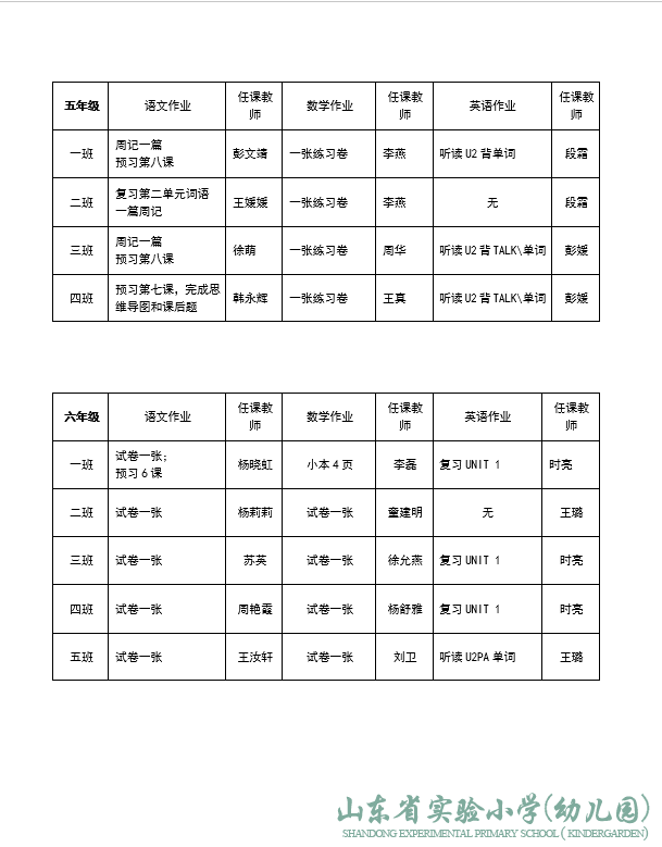 山东省实验小学领导班子成员分工