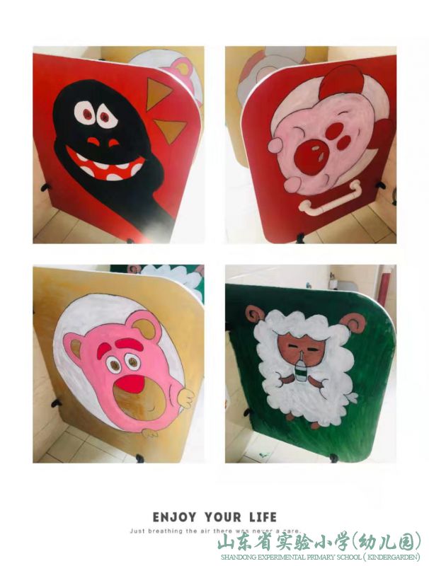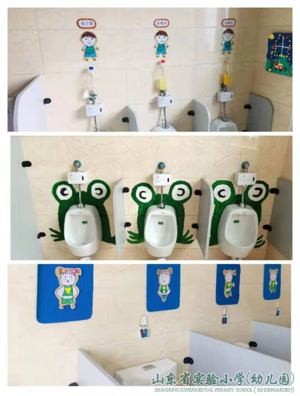 保育老师不只是擦桌子分餐打扫卫生,看她们布置的孩子们的卫生间,既有情趣又有内涵。就像园长妈妈说的那样,老师如果能在厕所里坐着喝水聊天,不愿离去,那么你的卫生间就达到了标准。果真如此,自从保育老师装扮卫生间后,孩子们可喜欢上厕所了,厕所真正达到了没有异味,只有香味。