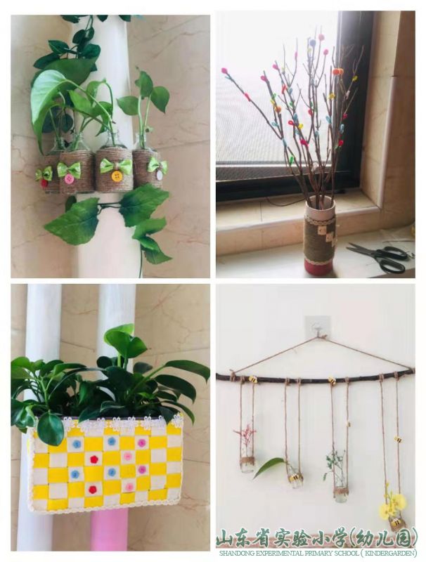 瞧!老师们充分发挥自己的聪明才智,独具匠心地利用纸盒、纽扣、麻绳、瓶盖等生活中常见的废旧材料,用灵巧的双手制作出一件件令人赏心悦目的艺术品。