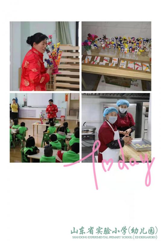 伙房帮厨曾庆玉,经她的手,面团成了千面世界,曾老师带领小朋友进行制作,共同为幼儿园环境增色彩。