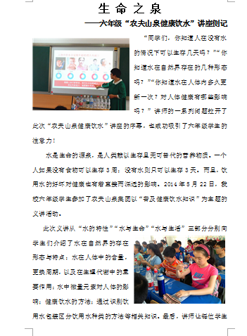生命之泉——六年级“农夫山泉健康饮水”讲座侧记