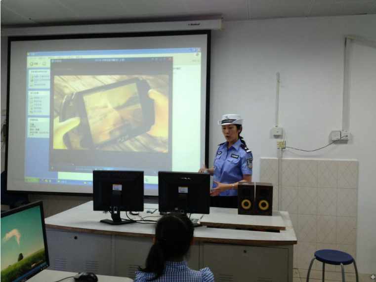 李警官向同学们讲解了交通法规知识、播放交通安全宣传片,向学生们