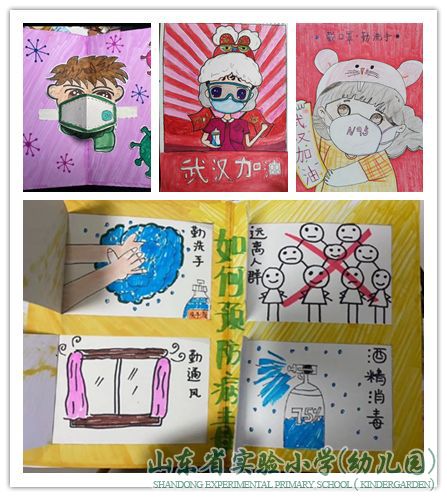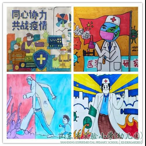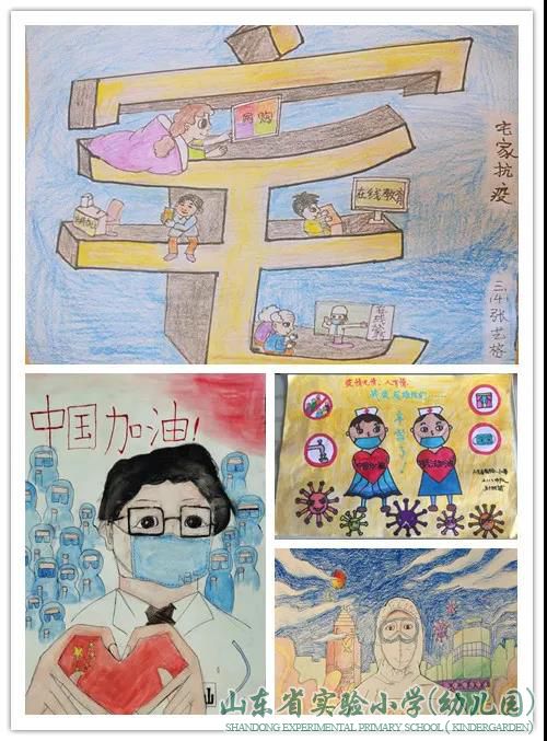 视频的学习引发了学生们更多的思考。瞧,三四年级的同学拿起画笔绘出一幅幅疫情防护画,小小的画笔,大大的决心,学生们在加强自我保护意识的同时将疫情防护知识传达给身边的人。