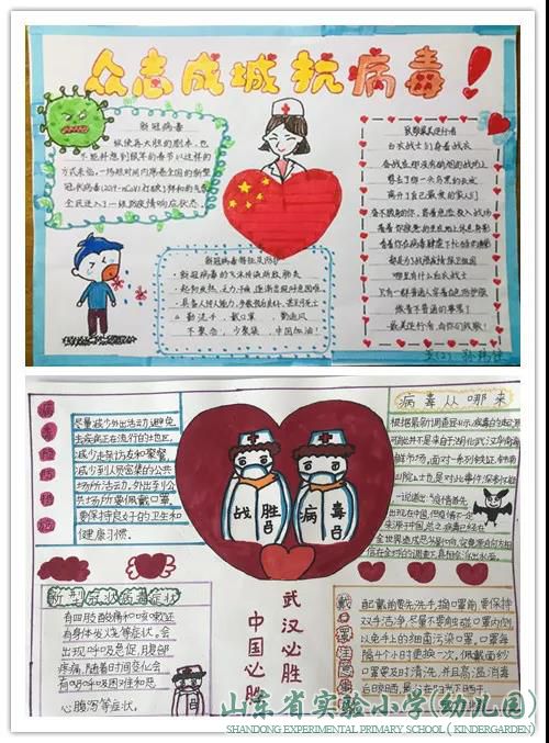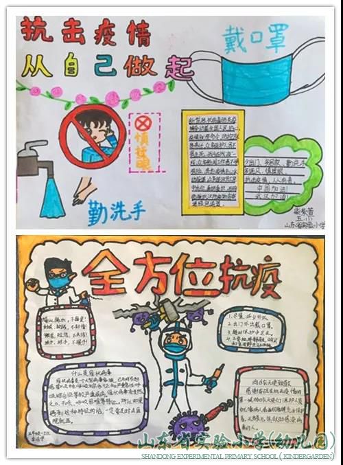 五年级的同学则拿出尺子将自己学习到的防控规范知识制作成一张张防控规范知识小报。