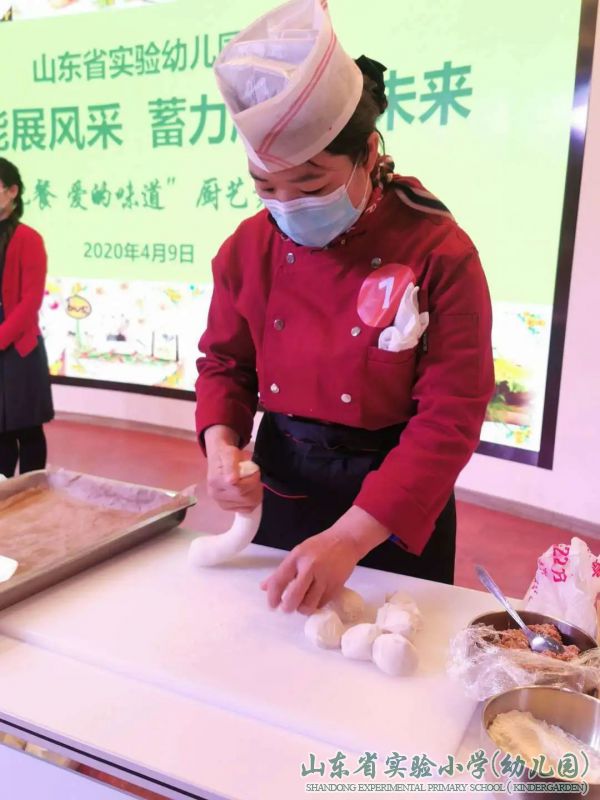 今天在幼儿园本部举行了首场厨艺技能展示活动“营养配餐,爱的味道”