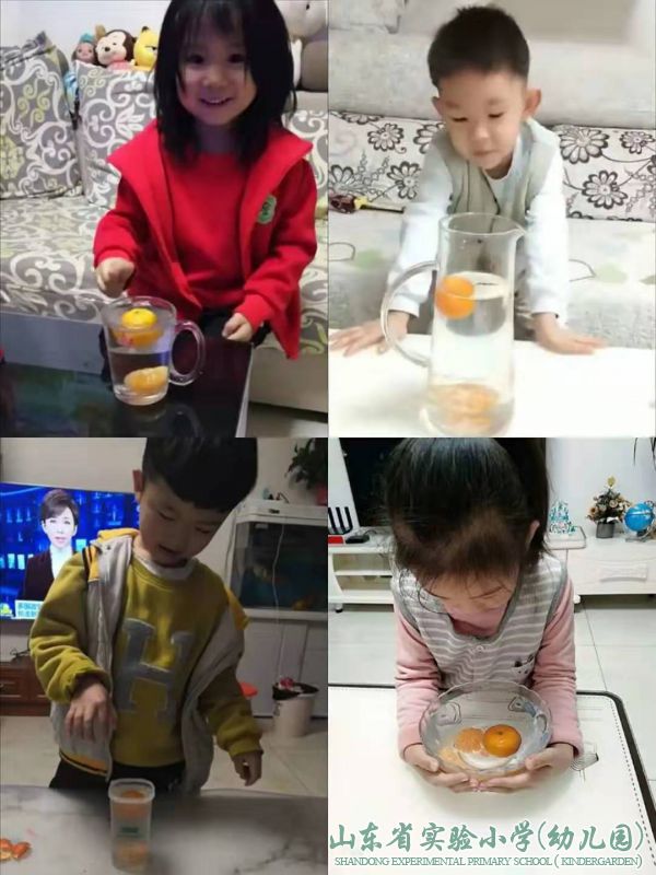 而剥皮后的柑橘类水果的密度比水的密度大,因此会沉到水底。用新鲜且皮厚的橘子做实验效果会更好哦!