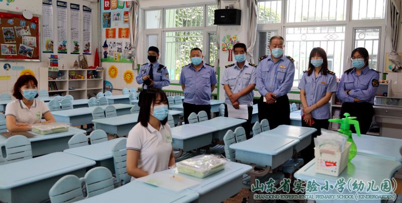 为进一步做好疫情防控期间学校安全防范工作,确保开学安全、平稳、有序推进,切实保障校园安全稳定,促进学校防控和救治工作的标准化、科学化,5月20日,学校再次开展了多部门疫情防控实战应急演练。历下区教体局小学教研室主任殷崇、辖区市场监管所韩青所长及历下区市场监管部门专业人员、社区卫生中心柳云进主任、趵突泉派出所马超警官等到场指导,现场进行了点评,提出了专业性建议。校(园)党总支书记、校长(园长)苗建,校(园)党总支副书记、副校长(园长)李波一同观摩演练。