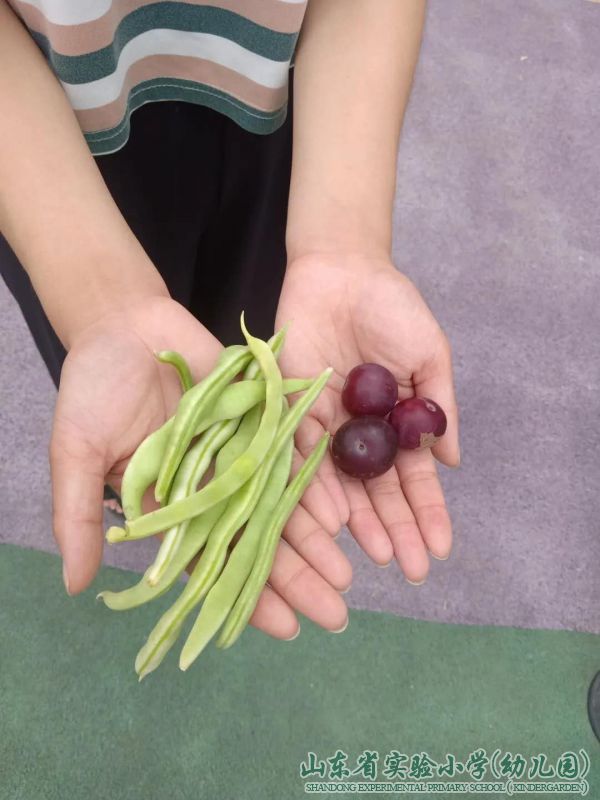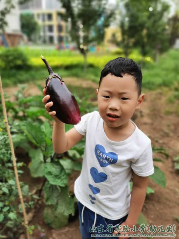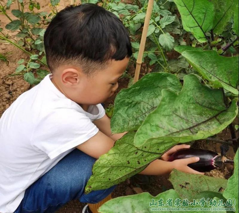 摘下成熟的蔬菜,送给伙房阿姨,