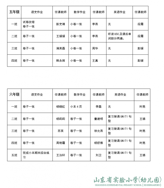 山东省实验小学领导班子成员分工