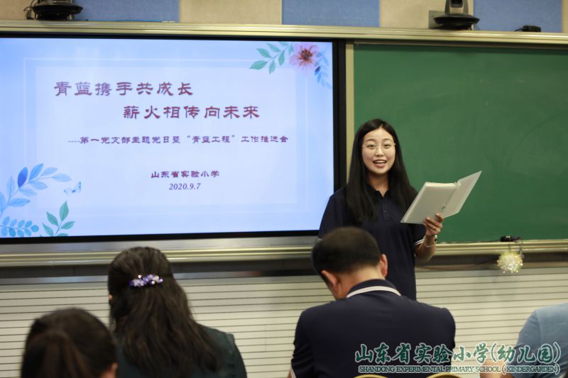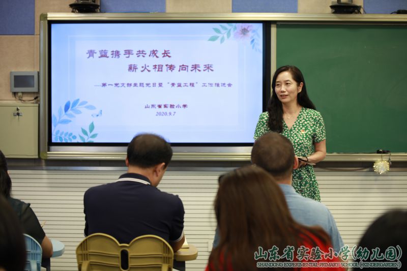 九月如歌,万物齐吟。在第36个教师节即将到来之际,为发挥优秀党员教师的引领作用,有效培养中青年教师,加快教师队伍建设,9月7日下午,山东省实验小学举行了主题党日暨“青蓝工程”推进会。会议由第一支部副书记、教学处副主任鲁春红同志主持。会议的召开同时标志着学校师德师风建设月正式开启。