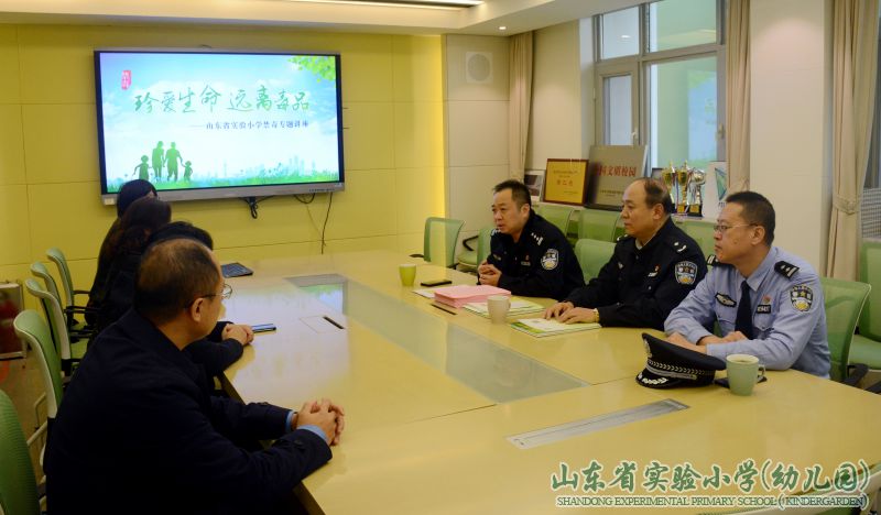 讲座结束后,济南市公安局历下分局禁毒大队大队长郎卫华、调研员刘燕春就学校禁毒宣传教育工作的开展,同校长苗建、副校长郑国栋及相关部门负责干部教师进行了深入交流。下一步,学校将与禁毒部门加强合作,借助参加2020年全国青少年禁毒知识竞赛这一契机,开展“小手拉大手”签订承诺书、班级答题竞赛、禁毒专题讲座、禁毒主题微研学等丰富多彩的系列活动,扎扎实实做好毒品预防教育,在每个孩子心中种下远离毒品的种子,自觉抵制毒品,真正实现“绿色无毒 健康人生”。