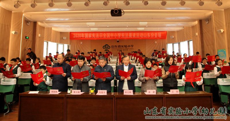 为深入学习宣传习近平法治思想,大力弘扬宪法精神,12月4日,山东省教育系统国家宪法日“宪法晨读”主题教育活动在省实验小学隆重举行。省实验小学已连续五届作为全国中小学国家宪法日“宪法晨读”活动山东分会场。山东省教育厅二级巡视员刘俊才,政策法规处处长赵立辉、副处长夏贞鹏来到学校,和师生一起参加活动。