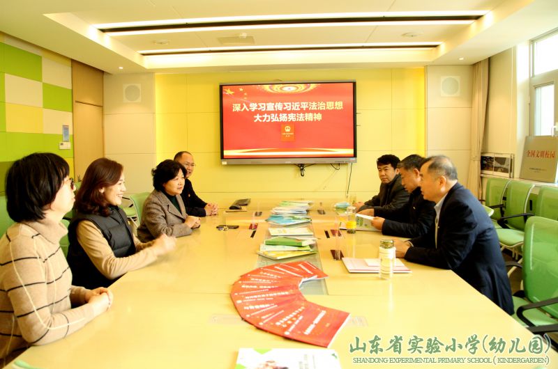 “宪法晨读”活动结束后,刘俊才、赵立辉、夏贞鹏等同志与省实验小学(幼儿园)党总支书记、校长(园长)苗建,第一支部书记、副校长(副园长)郑国栋及相关干部教师进行座谈交流,开展了以“深入学习宣传习近平法治思想,大力弘扬宪法精神”为主题的主题党日活动。