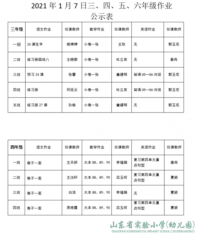 山东省实验小学领导班子成员分工