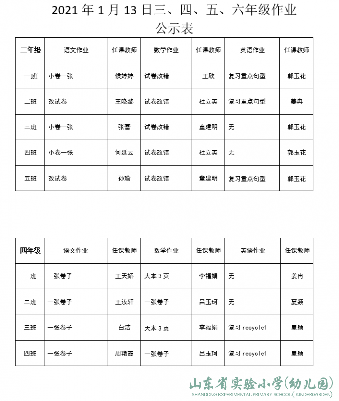 2021年1月13日作业公示