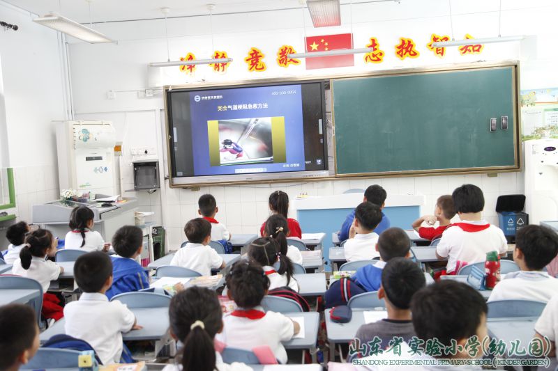 这次班会暨主题党日活动,学校诚挚邀请了济南蓝天救援队的老师们为大家讲解安全急救常识。学校的部分班级学生、全体党员教师、教职工在现场参加活动,班主任教师带领学生在教室通过大屏的现场直播聆听讲座。