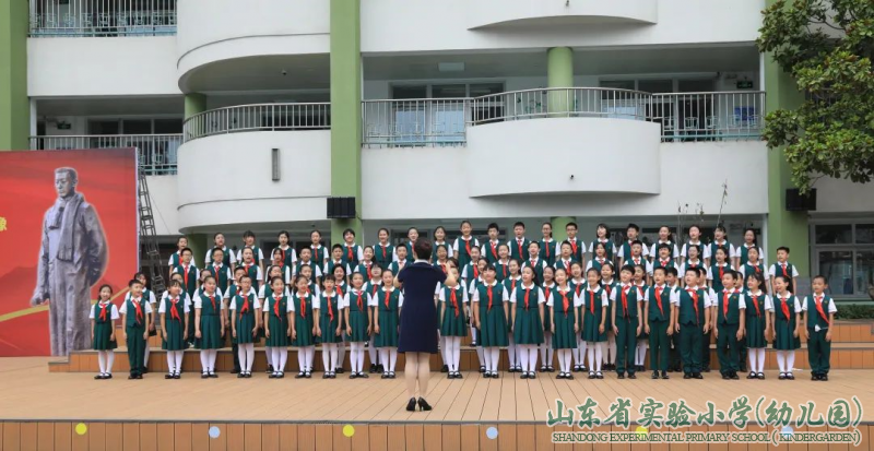 学校合唱队的同学们深情演绎了原创歌曲《百年校园花正红》,表达对敬爱的师长王尽美的崇高敬意,表明追随先辈足迹、永远跟党走的决心和志向。