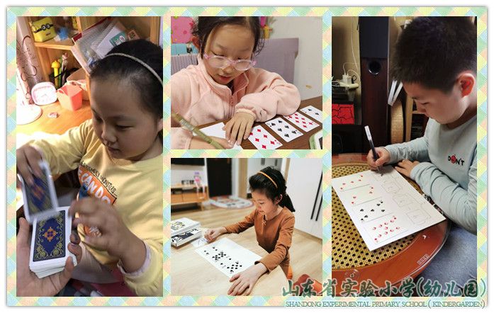 四年级学生在观看微课视频的基础上,经过老师的引导,巧妙运用“24点”的扑克牌游戏,锻炼四则混合运算能力,使枯燥乏味的四则混合运算焕发出多变、灵动的活力。同学们积极思考一张张纸牌之间的运算关系,乐在其中,感受着思维的魅力,体会着破解后的快乐,居家学习生活也因此变得趣味横生。