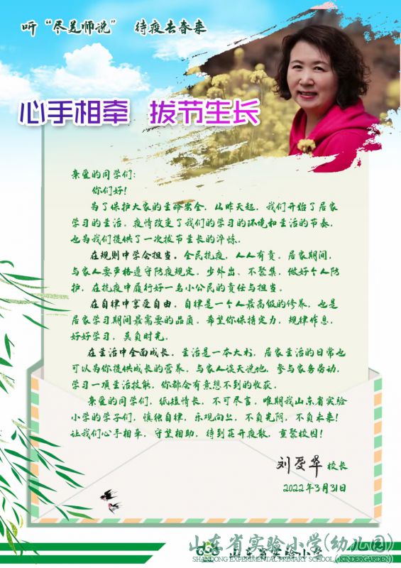 为有效落实各级教育行政部门“停课不停学”的要求,山东省实验小学于3月30日起全面实施教学。