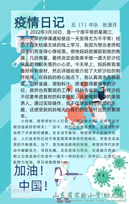 居家不虚度,劳动最光荣!在这特殊的日子里,山东省实验小学将每日劳动纳入居家生活的必要项目之一。队员们一边居家线上学习,一边变身劳动小能手,整理家务,打扫卫生、洗衣做饭……每个孩子都成为了家中的小主人。虽足不出户,却也过得充实快乐而有意义。经过几天的劳动实践,我们寻找到了几位劳动小榜样,他们经过不断的尝试,学习到了哪些生活小技能、劳动小妙招呢?下面让他们分享一下自己的劳动体验吧,一起来看看他们的劳动风采吧。