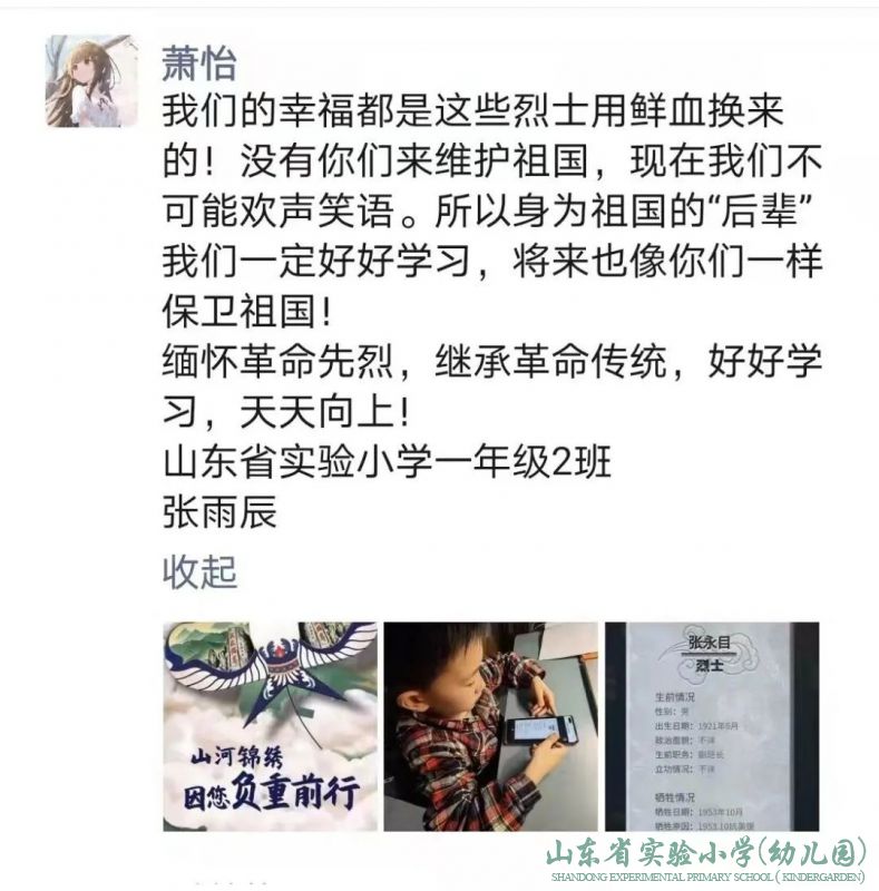 山东省实验小学的队员们积极参与共青团中央宣传部、全国少工委办公室组织的“清明祭英烈”线上纪念活动。队员们参与直播,在线上平台放飞一只属于自己的追思风筝,向家乡的英雄英烈们致敬!