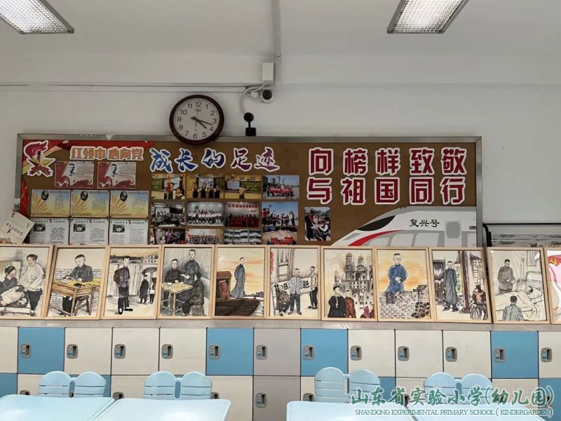 醒目的标题,手绘的英雄故事,体现成长足迹的照片墙,这些教室文化时刻激励着队员“心有榜样,行有志向”。
