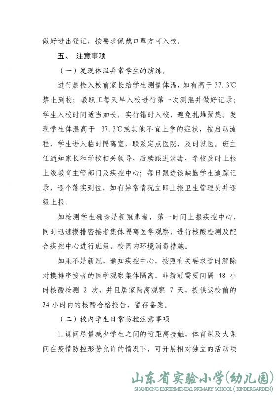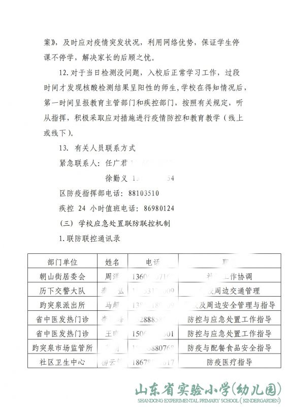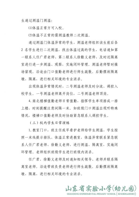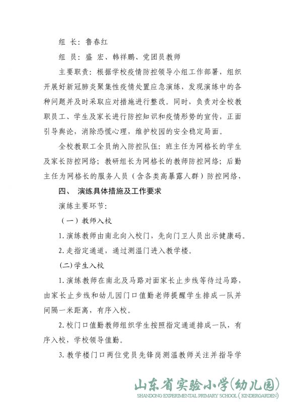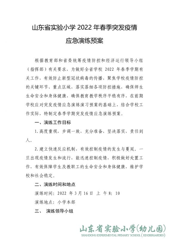 山东省实验小学2022年春季突发疫情应急演练预案