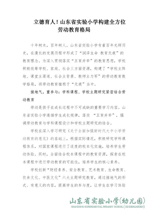 立德育人!山东省实验小学构建全方位劳动教育格局