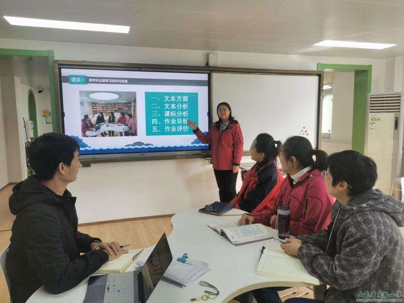 今年国家教育部颁布了《义务教育语文课程标准(2022年版)》,指出“义务教育语文课程内容主要以学习任务群组织与呈现”。“跨学科学习”是语文课程六大学习任务群之一。今年暑假,山东省实验小学五年级语文组对“跨学科学习”进行积极的探索。周二下午的两点,升入六年级的语文教研组在韩主任的带领下,就下一步如何进行语文+跨学科开展活动进行了深入教研。