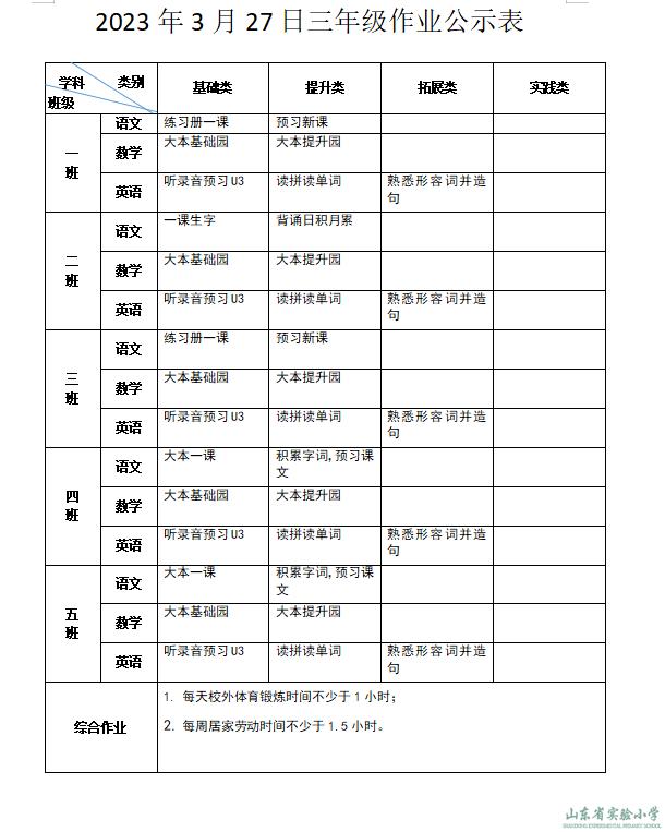 山东省实验小学学生阳光体育运动工作方案