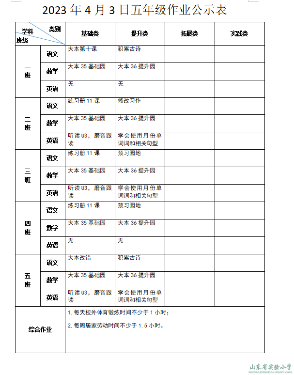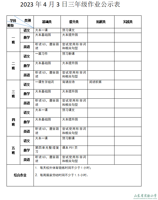 山东省实验小学学生阳光体育运动工作方案