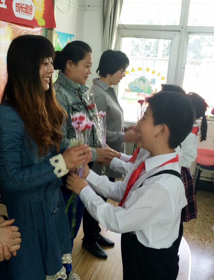 妈们看到孩子们给自己写的祝福的话语、收到美丽的康乃馨,感觉很欣慰 。仪