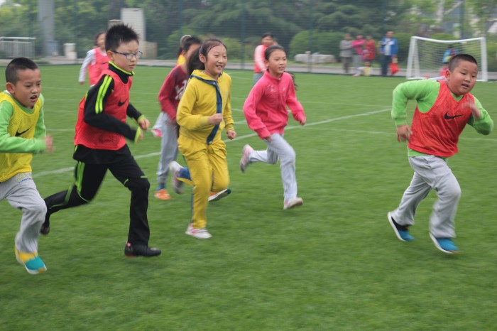 孩子们在宽广松软的足球场上,尽情挥洒着汗水,享受着足球、享受着快乐。场