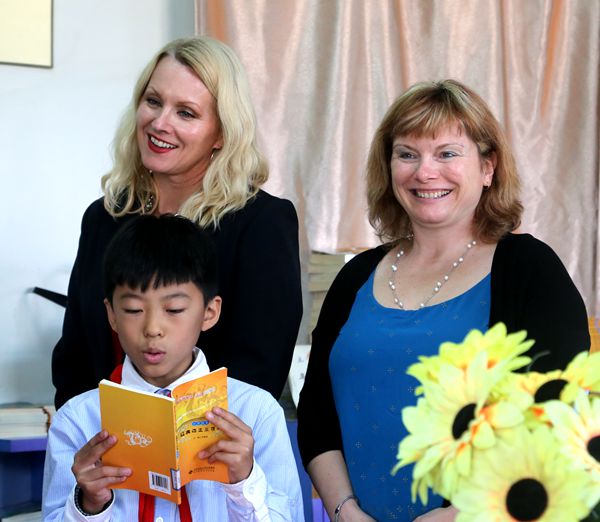 在校领导陪同下,外宾们来到三年级一班教室,观摩了郭玉花老师《Colourful Stationery——彩色文具》一课,老师的讲解借助功能强大的一体机变得更加精彩,学生的学习辅以人手一台的平板电脑变得更为个性化,“一对一智慧学堂”的教学模式得到了外宾的高度评价。听课结束后,外宾们来到操场,一同观摩学生的大课间活动,外宾们对班级展示的特色体育活动充满兴趣,他们参与其中,与学生一起欢乐互动。在学校多功能厅,外宾们观看了学生们精心准备的文艺节目,《红河谷》《弟子规》等节目精彩纷呈,得到了外宾的一致称赞。演出结束后,外宾们又参观了我校的特色课程展示,动漫恰恰恰、快乐机器人、国际式摔跤、墨香飞舞等课程各有特色,展现了丰富多彩的课程内容,体现了全面发展的育人理念,当得知我校每周五的“自主快乐FRIDAY”共有三十多种课程供学生自主选择时,外宾们更是赞叹不已。