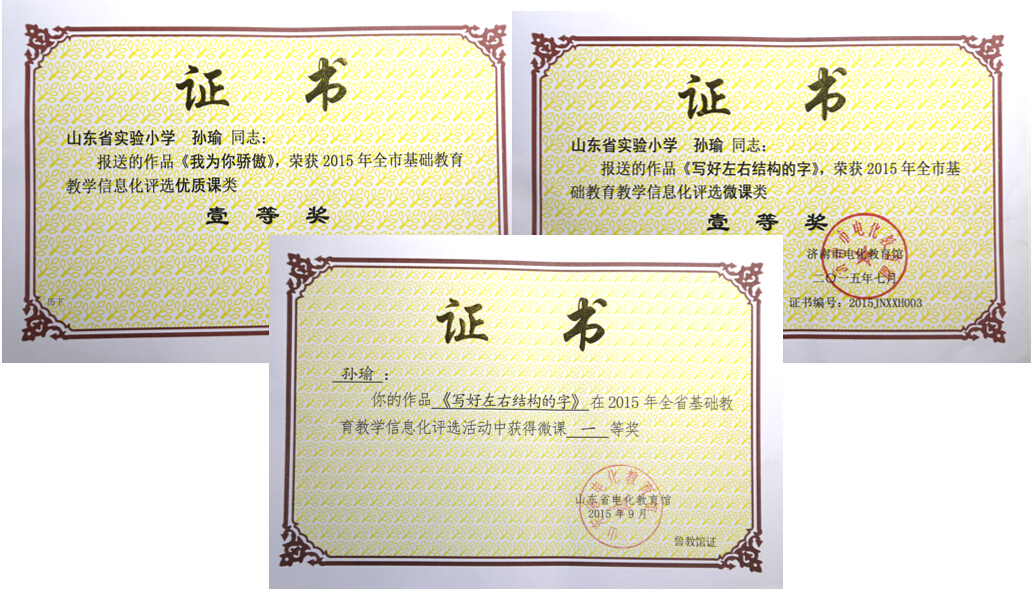 在济南市历下区教育局电教站举办的优质课比赛中,荣获一等奖的有孙瑜老师、吕玉珂老师;
