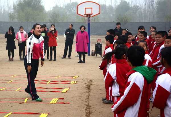 捐赠仪式上,我校李笃强副校长代表学校向辛店镇中心小学捐赠了600套学习桌椅、2000册课外读物和10套多媒体设备,并发表了热情洋溢的讲话,向辛店镇中心小学全体师生送上了我校师生们深深地祝福。随后,我校两位党员教师代表还为辛店小学四五年级的学生们送上了两节精彩的观摩示范课:房雪芹老师执教的体育课《跑出你的色彩——有趣的身体素质练习》和李凤舞老师执教的综合实践课《小小绳子变变变》,均得到了上课学生的热烈欢迎和随堂听课领导老师的一致赞扬。