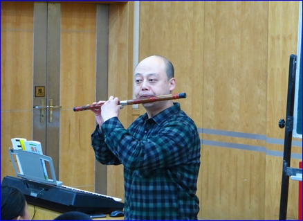 2、教师采用其他的表现形式展示《茉莉花》,进一步激发学生表现音乐的欲望和对民族音乐的喜爱。竹笛演奏。