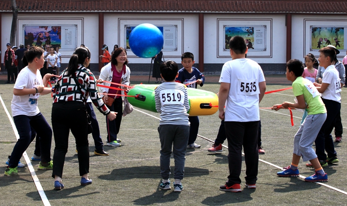 高年级的项目是:众星捧月、好运滚滚、齐心协力和同舟共济。其中最有难度的项目是好运滚滚,要求8名学生通过协作配合拨动比赛器材向前滚动行进至终点。这个项目不仅考验大家的合作能力,还考验了每一个学生的四肢协调性,稍不注意则使整个队伍的进程速度减慢。学生们通过不懈的努力,齐心协力冲向终点!每个项目都能体现团结协作、积极进取正能量,让学生们体验了运动的快乐、竞争的乐趣,分享了成功的喜悦。