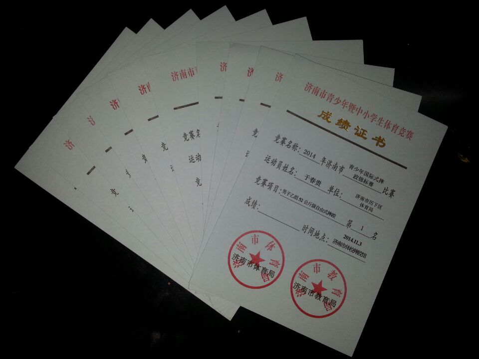 在本次比赛中,我校共派出三十二名选手分别参加古典式摔跤的甲乙组、自由式摔跤的男子甲乙组、女子甲乙组等多个比赛级别,队员们在赛中克服重重困难,互相鼓励,奋勇拼搏,经过两天的顽强奋战共获得 9 枚金牌、9枚银牌、8枚铜牌及团体总分第一名的优异成绩。我校摔跤队还在本次比赛中荣获体育道德风尚奖,并得到历下区体育局领导的褒奖。