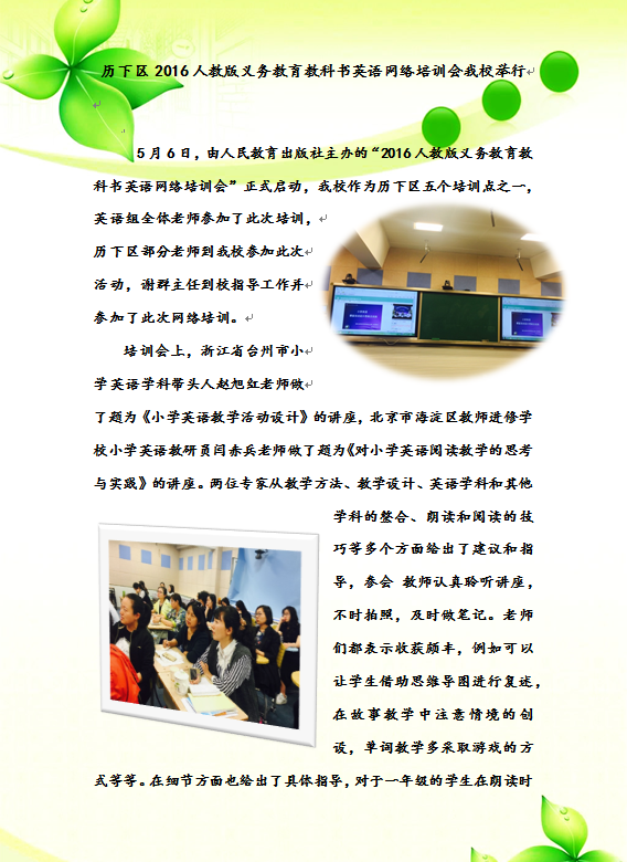 历下区2016人教版义务教育教科书英语网络培训会我校举行