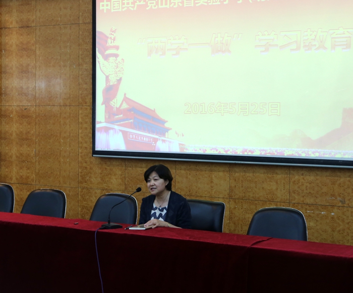 2016年5月25日下午,山东省实验小学(幼儿园)党总支在小学多功能厅召开全体在职党员大会暨“两学一做”学习教育专题会议。会议由党总支书记苗建同志主持,小学(幼儿园)全体在职党员全部参加会议。