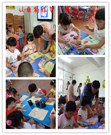 9月9日下午,中班、大一班和大二班的孩子们在老师的指导下,精心制作教师节贺卡。有的孩子发挥绘画的特长,用手中的五彩画笔画出对老师的爱;有的孩子发挥手工的优势,利用剪、贴、折,制作了一张张精美的贺卡。孩子们在贺卡上认真写下了“祝老师节日快乐”的字样。9月10日,孩子们将精心制作的贺卡送给老师,以此表达对老师的爱和感谢。他们不仅将贺卡送给自己的园长和老师,还送给了小海豚幼儿园的园长、老师以及在厨房为大家精心做饭的老师们。一句句“祝老师节日快乐!”、“老师,您辛苦了!”表达孩子们幼小的心灵中对老师炙热的爱和无尽的感谢,老师们很是感动。老师们接过贺卡时非常激动,也非常开心,和孩子们深情拥抱,充满爱的画面令人倍感温馨!